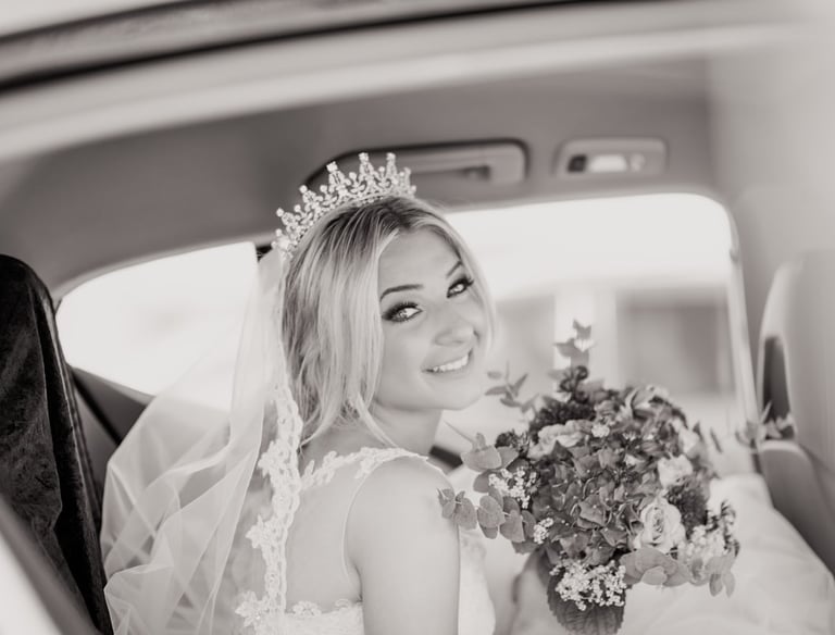 Oferecemos transporte elegante e confortável para o seu grande dia.
